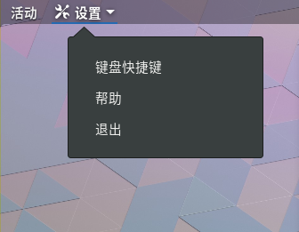 可以注意到活动旁边的设置上有个倒三角形,点击可以打开应用程序菜单: