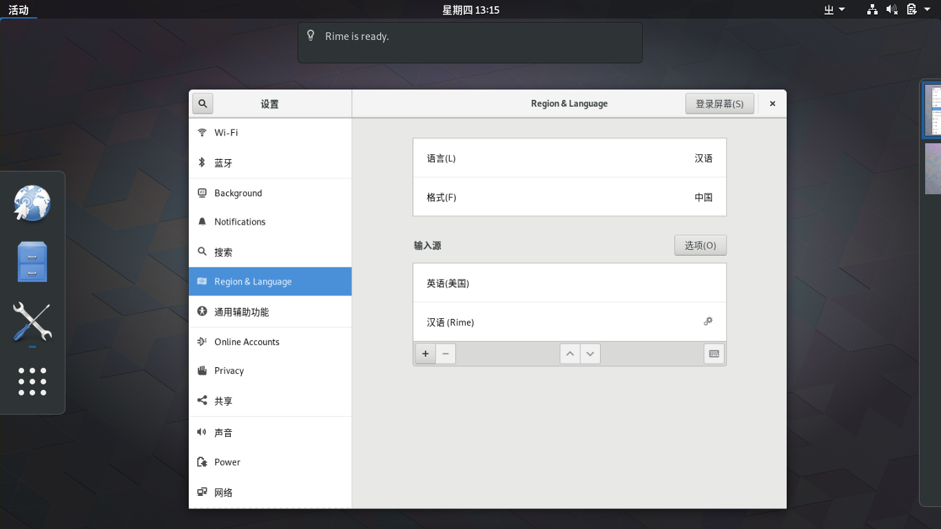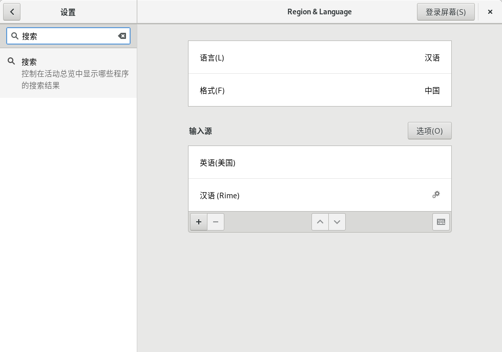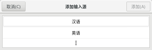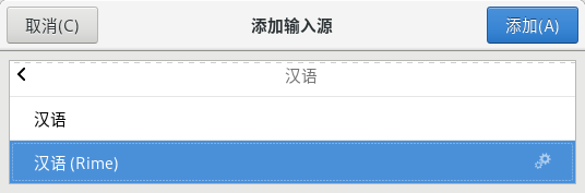 在添加输入源中依次选择 汉语 - 汉语(Rime)