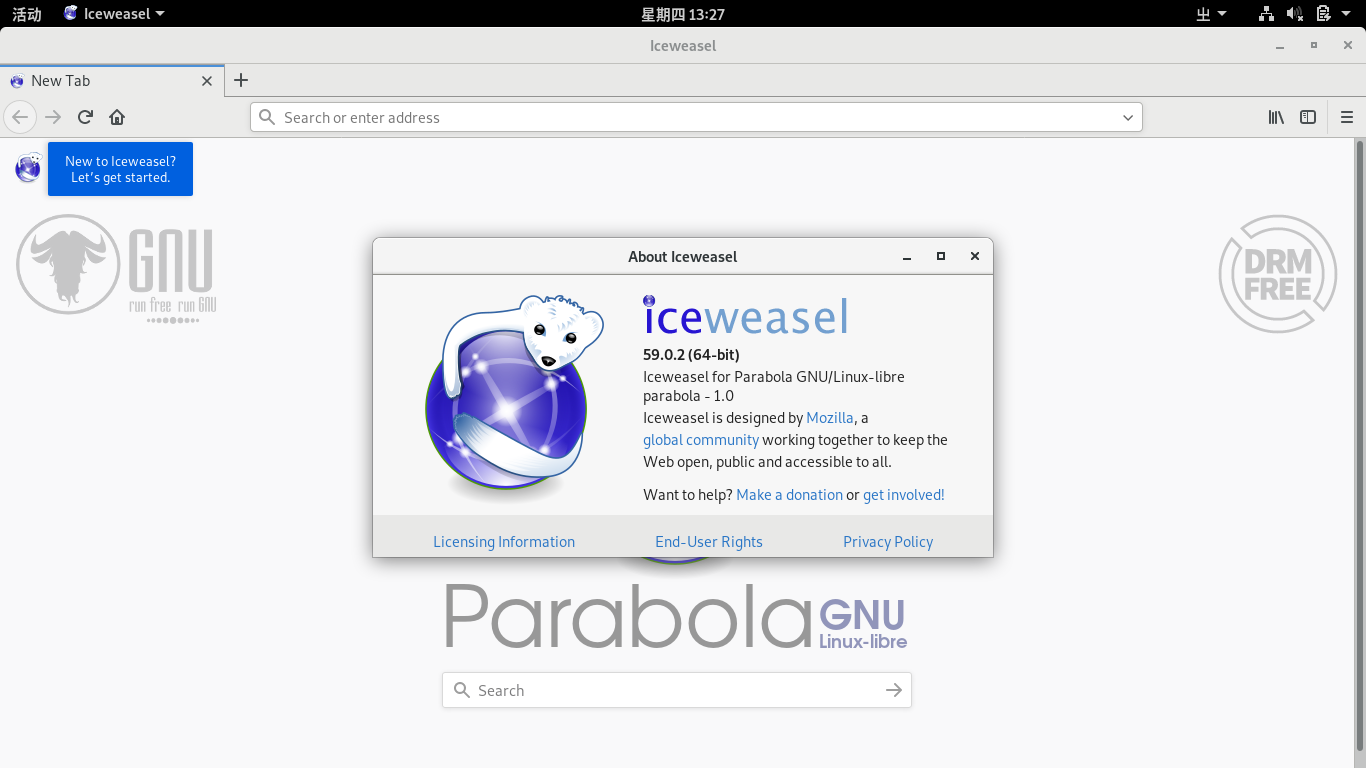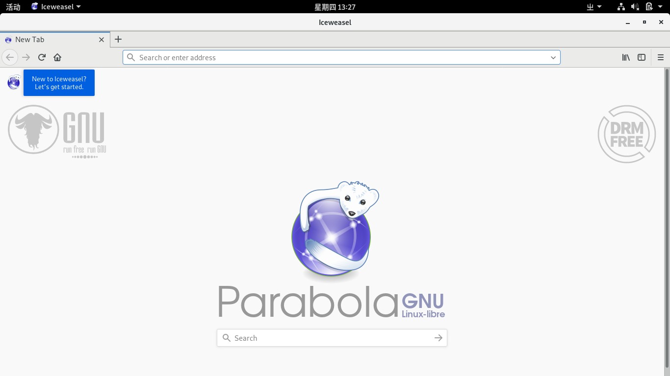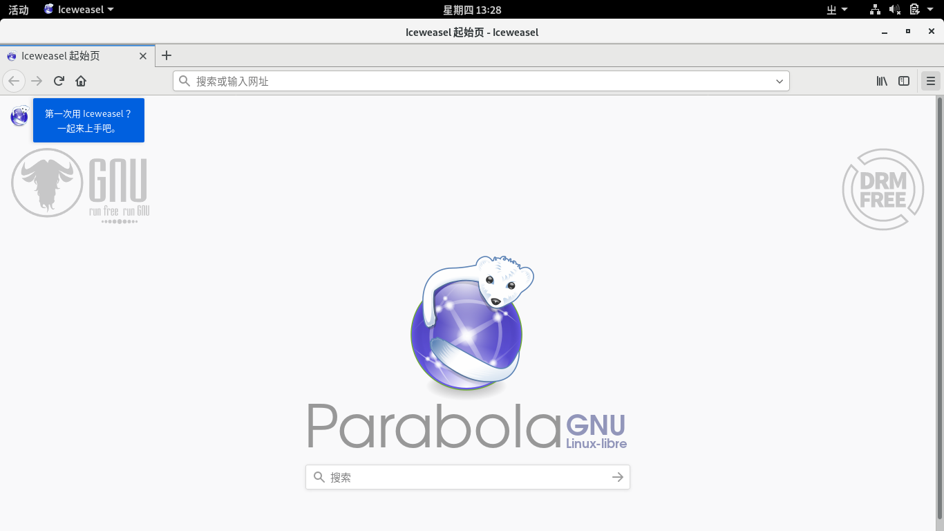 如果想切换到中文的话,可以安装 iceweasel-l10n-zh-cn 然后重新启动一下。
